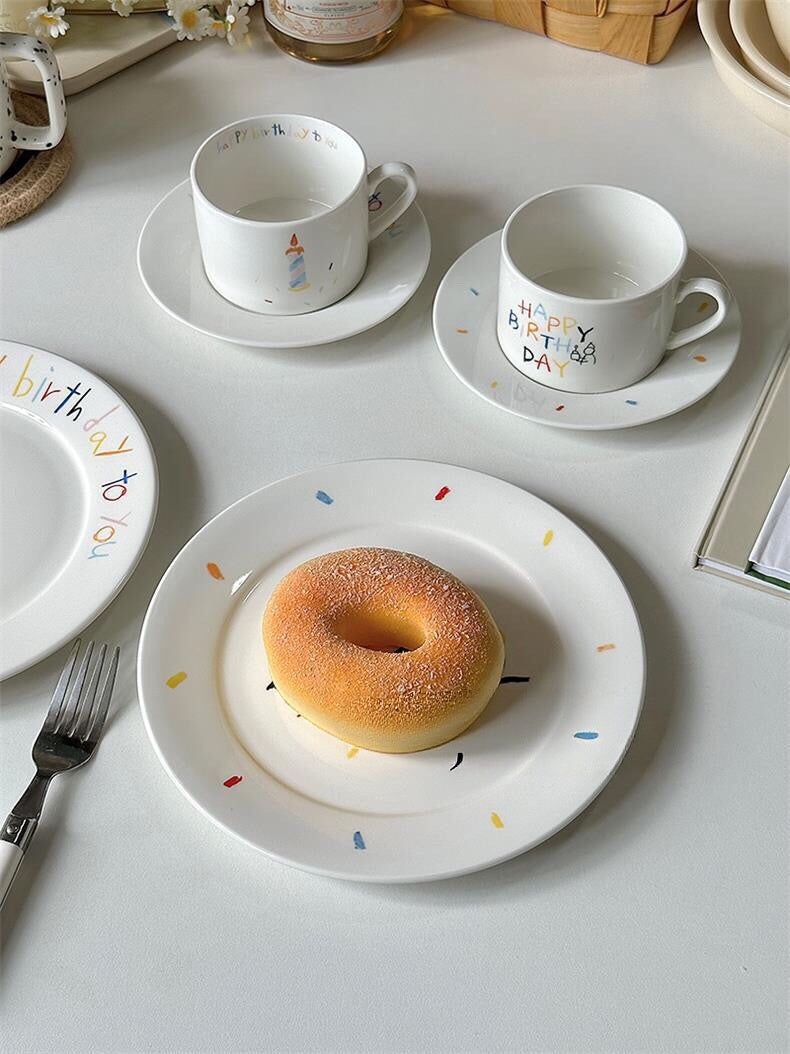 This ceramic plate is designed for birthday celebrations and dessert presentation, available in two styles: a candle design and a “Happy Birthday” design. The 8-inch size is suitable for cake, pastries, or table decoration, creating a festive look for photos and gifting scenes. Each plate is hand-finished, so small variations in the pattern may occur.