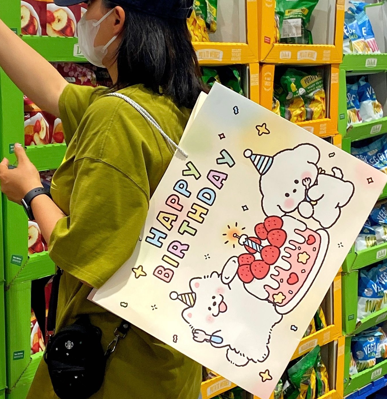 This colorful birthday puppy–themed gift bag is made from sturdy hard card paper — perfect for presenting gifts or party favors. Available in two sizes to suit different needs.