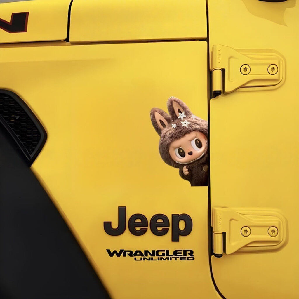 This set of 2 Labubu car stickers includes one for the left side and one for the right side. Each sticker measures about 5.9 x 3.9 in, making them perfect for decorating your car, laptop, or personal items. Waterproof, strong adhesive, and removes cleanly without leaving residue.